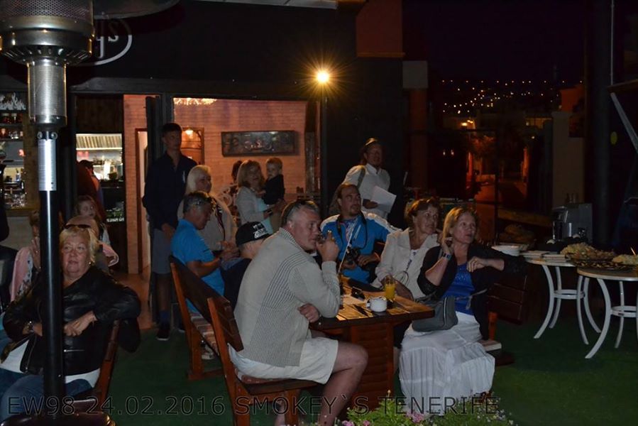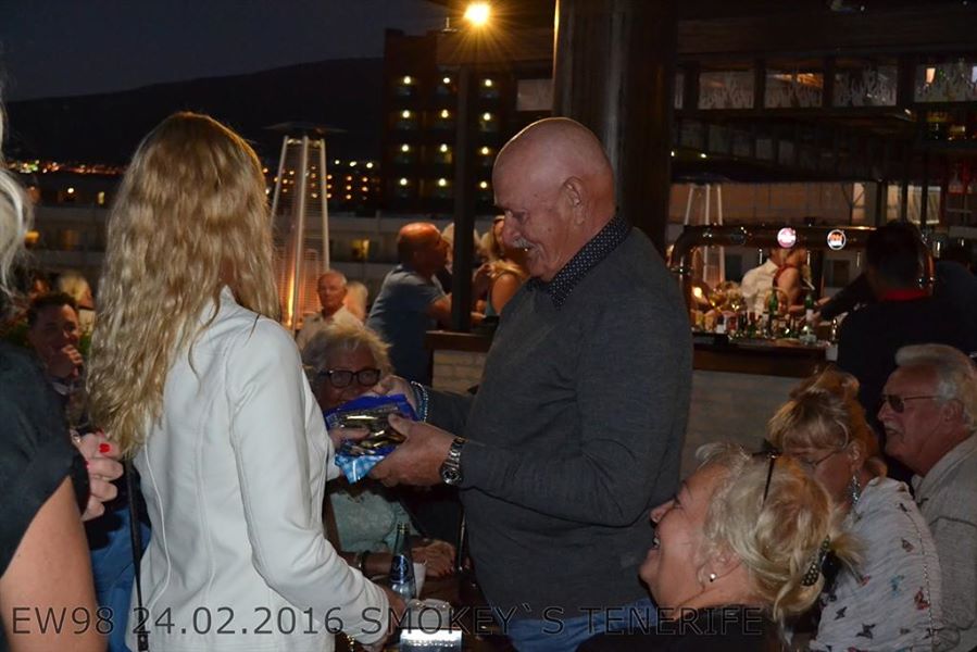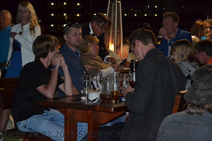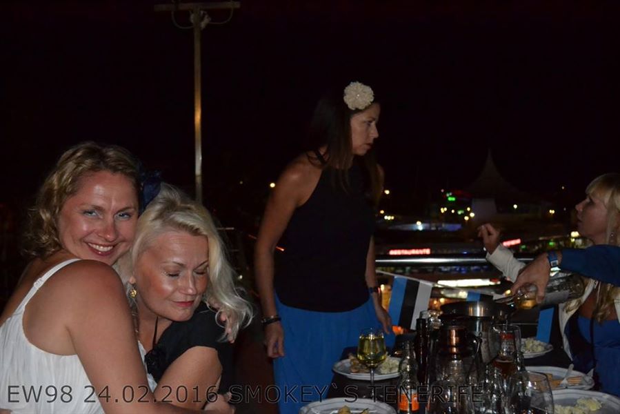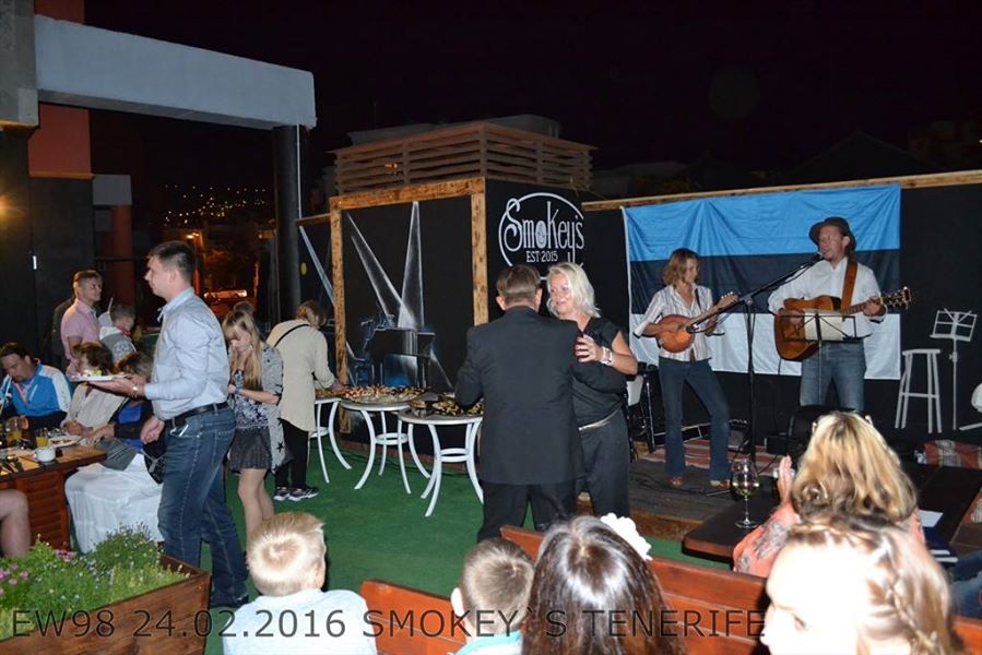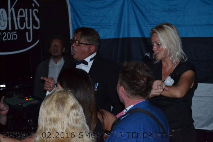 2016 – EW98 Kaheks aastaks kolis aastapäeva pidu peaaegu et Kompassi tagasi. „Peaaegu et“ ei ole tegelikult päris täpne väljend, sest vähemalt osaliselt koliski, nimelt sai Kompassi kontorist peoõhtul nö sakstekamber, kuhu sai varjule minna, kui päris pidu juba kõrvadele hakkas. Õhtu edenedes juhtus küll sedagi, et Kompassis oli lärmi rohkem kui peoplatsil. Ja peoplats oli mõnikümmend meetrit Kompassist edasi, nurgapealses ja hunnitu ookeanivaatega puhvetis nimega Smokey`s. Suitsune nimi sai kohale pandud sellepärast, et omanikul oli plaanis hakata seal liha ja kala suitsutama, aga plaaniks see jäigi, samas koht ise sai igati vinge. Õhtut juhtis ja lõõritas karmoskale taustaks Jaan Kirss, Tantsuks laulsid ja mängisid Mait ja Ave, üles astus ka Anne Velli. Köögis müttasid Sander ja Anneli ja kiluleibasid mõõdeti taaskord meetrites.