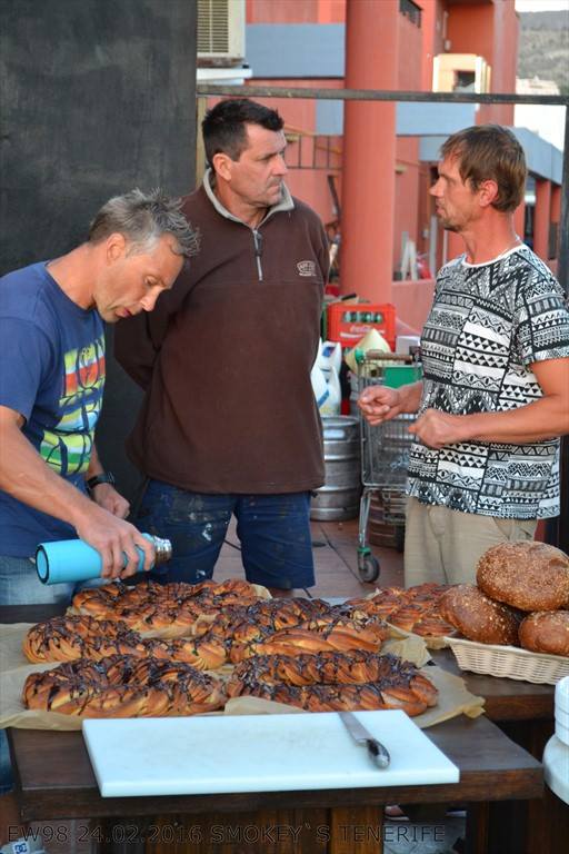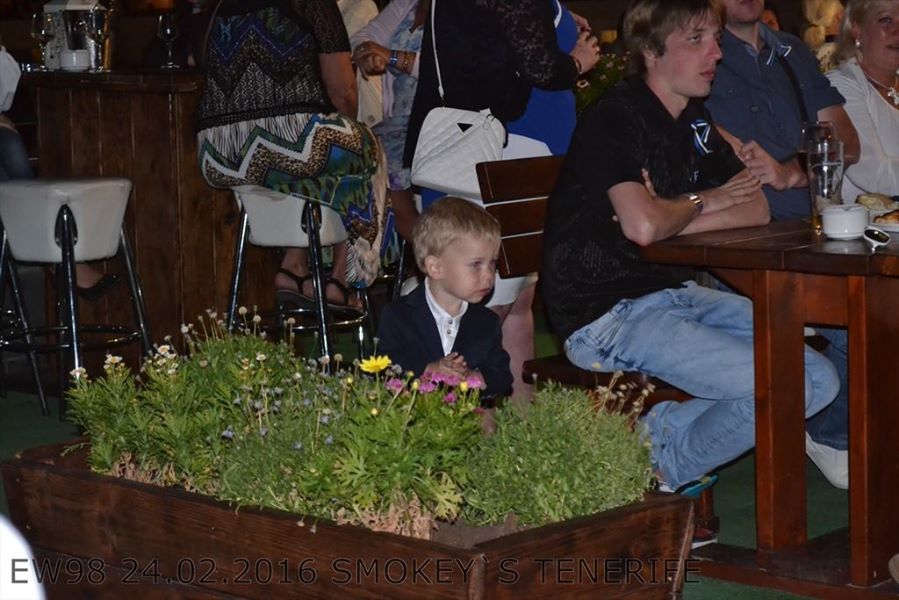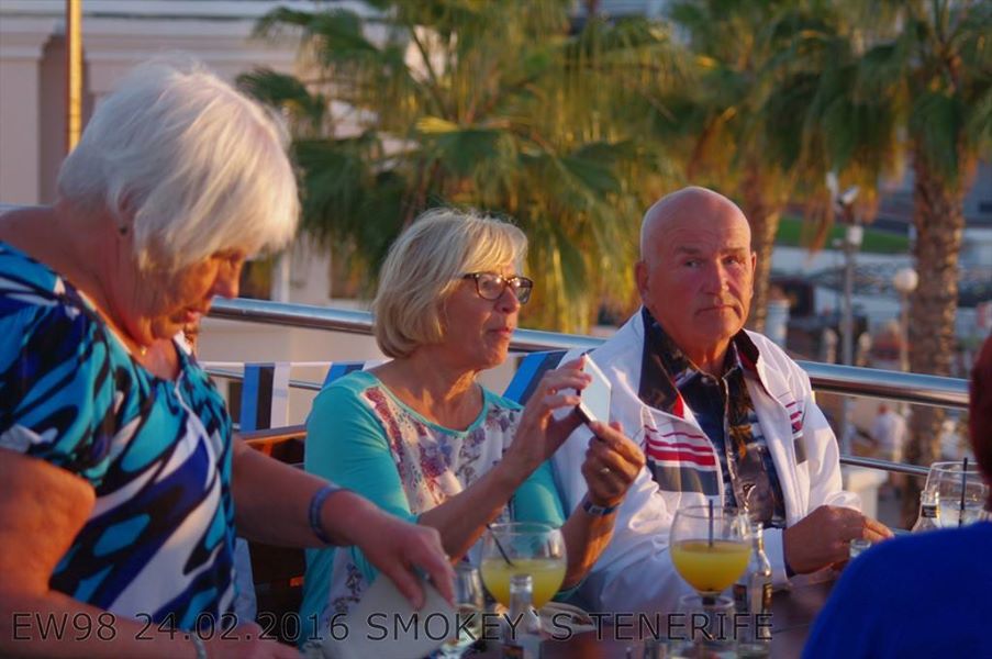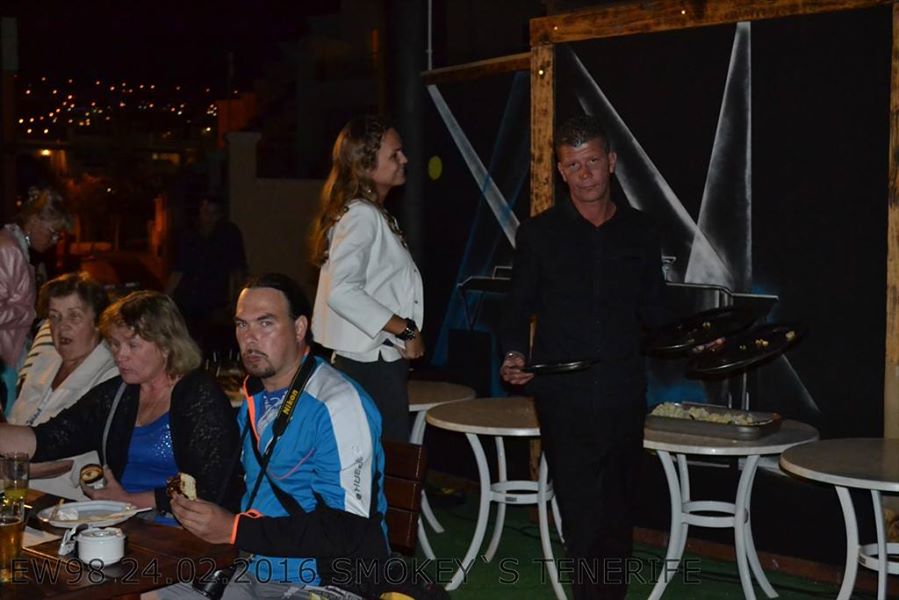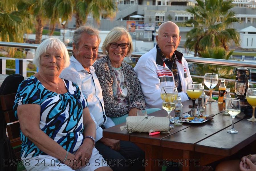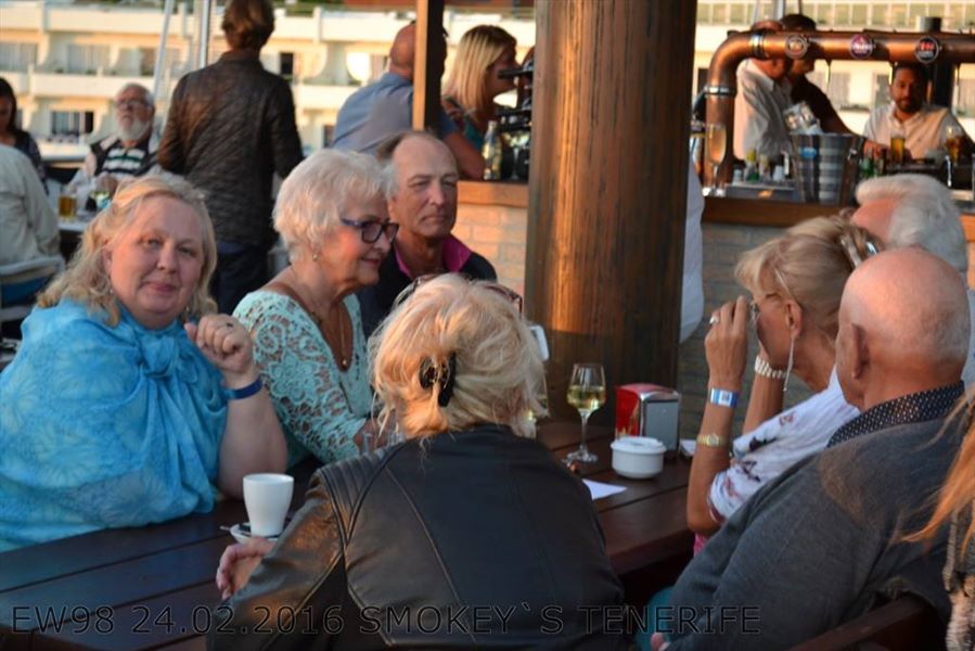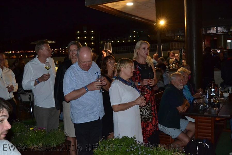 2016 – EW98 Kaheks aastaks kolis aastapäeva pidu peaaegu et Kompassi tagasi. „Peaaegu et“ ei ole tegelikult päris täpne väljend, sest vähemalt osaliselt koliski, nimelt sai Kompassi kontorist peoõhtul nö sakstekamber, kuhu sai varjule minna, kui päris pidu juba kõrvadele hakkas. Õhtu edenedes juhtus küll sedagi, et Kompassis oli lärmi rohkem kui peoplatsil. Ja peoplats oli mõnikümmend meetrit Kompassist edasi, nurgapealses ja hunnitu ookeanivaatega puhvetis nimega Smokey`s. Suitsune nimi sai kohale pandud sellepärast, et omanikul oli plaanis hakata seal liha ja kala suitsutama, aga plaaniks see jäigi, samas koht ise sai igati vinge. Õhtut juhtis ja lõõritas karmoskale taustaks Jaan Kirss, Tantsuks laulsid ja mängisid Mait ja Ave, üles astus ka Anne Velli. Köögis müttasid Sander ja Anneli ja kiluleibasid mõõdeti taaskord meetrites.