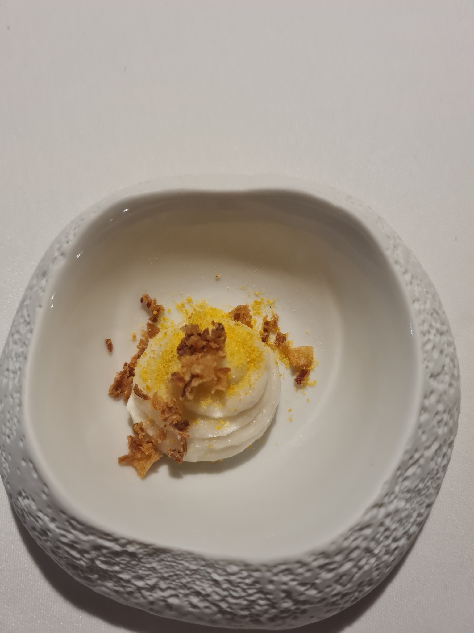 1. Koka tervitus: juka kreem ja krõbe sibul – tagasihoidlik, kuid soolaga täiesti sobiv algus.