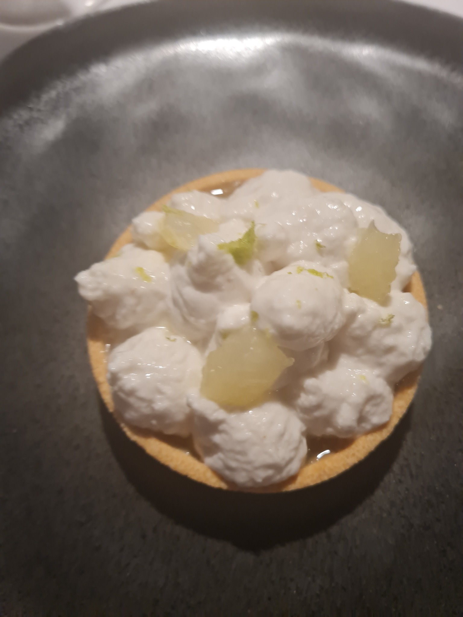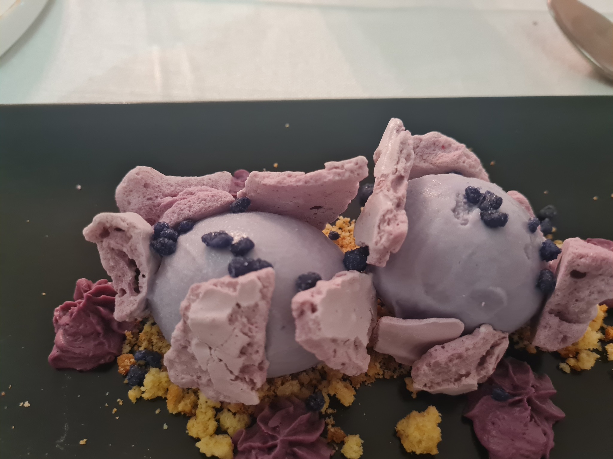 7. Mille-fueille lucuma ja lilla maisiga, jäätis – lehttaignaküpsised ilmselt pakist, mitte ise küpsetatud, kõik kokku jumala maitsetu, vaid jäätis hea. Toit kokku 38 punkti.