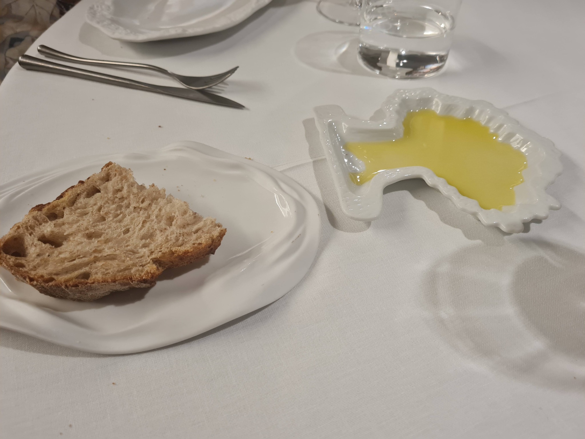 1. Leib võiga, kalaraviooli puljongis – valge sai ja pisut tumedam, ilmselt odrajahu lisanditega, polnud omaküpsetatud, vaid poest. Kolme sorti määrded head, kuid nii pisikesed nutsud, et ei jagunud ühelegi. Raviooli ja eriti puljong väga head, maitseelamus.