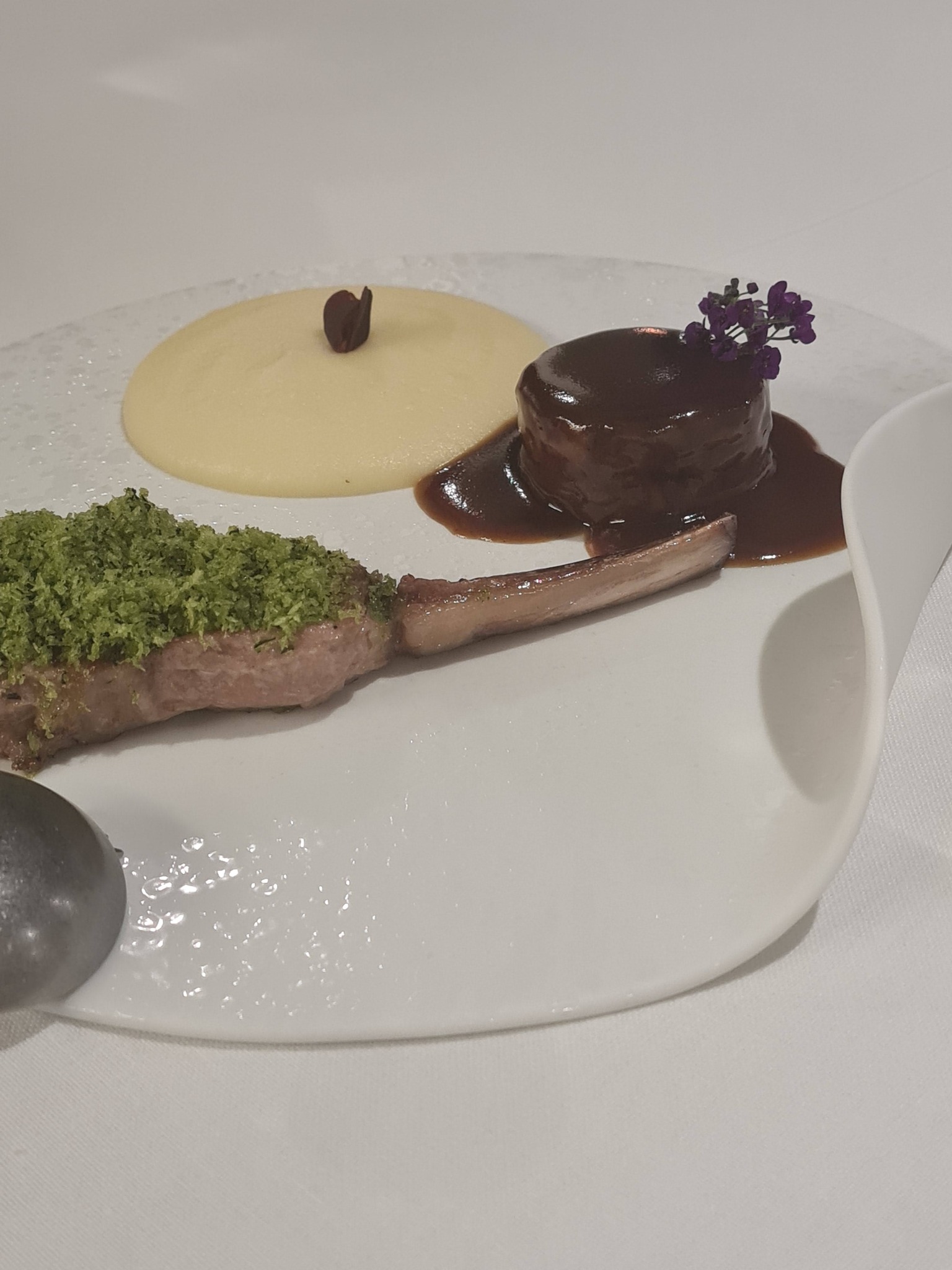 7. Prantsuse lambaliha pistaatsia, vürtsika baklažaani ja jogurtinootidega. Karree hästi küpsetatud, lisandid jätsid külmaks.