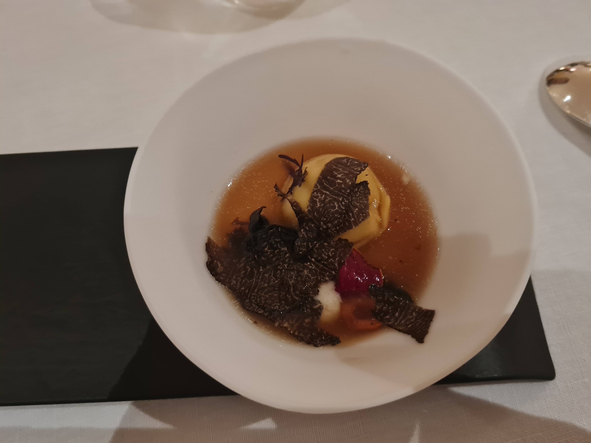 5. Trühvliravioli kreemjal seenel kapsainfusiooni ja trühvliviiludega. Absoluutselt ei meeldinud – kõige arusaamatum roog.