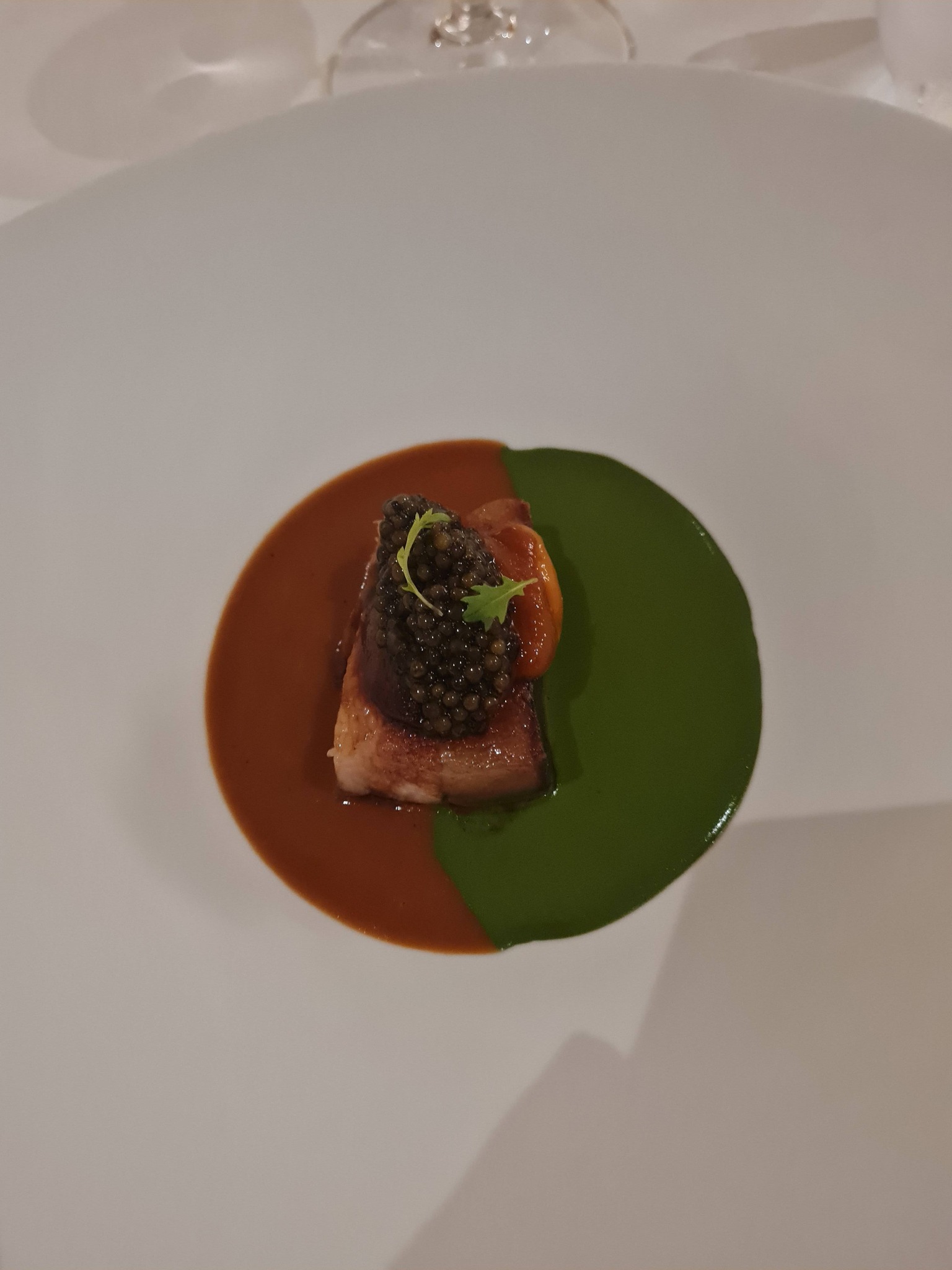 4. Char siu stiilis Kanaari must siga merisiili kollasega, kaaviari, basiiliku pesto ja tšillikrabi kastmega. Tõsiselt hea, tasakaalus maitsed, maitseelamus.