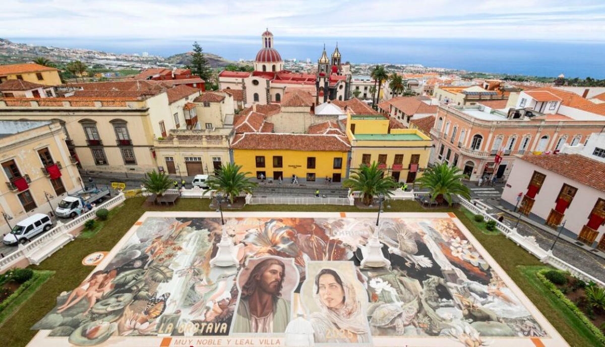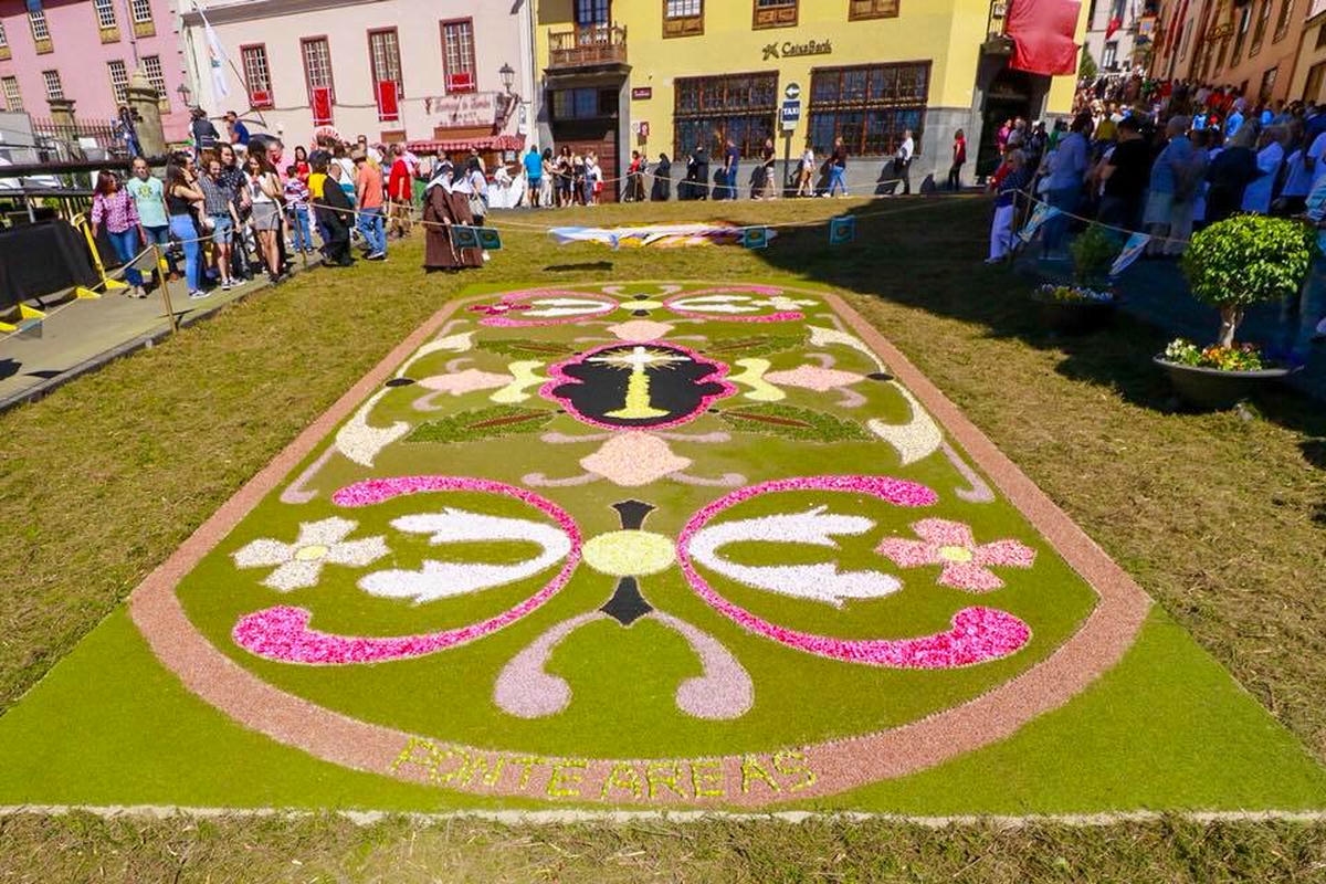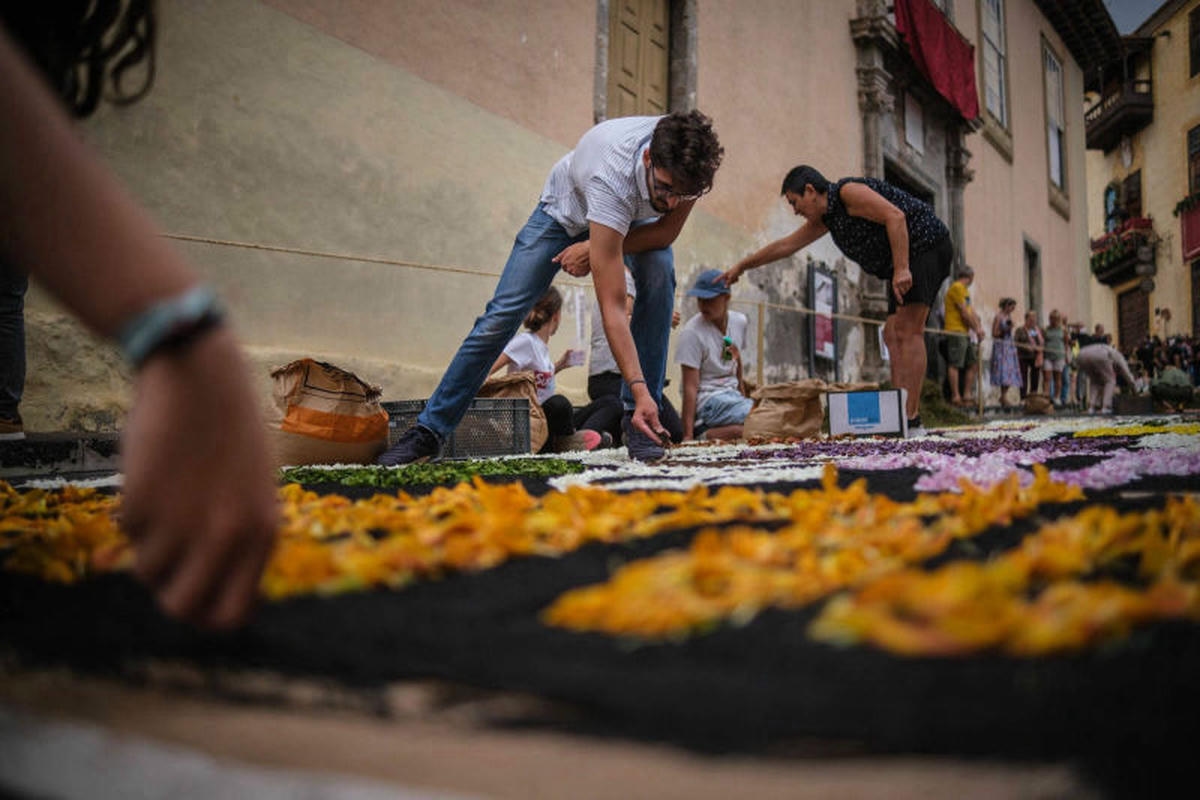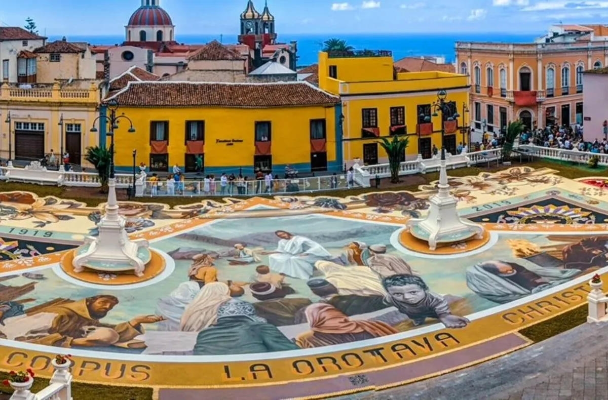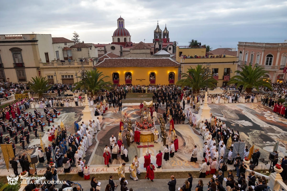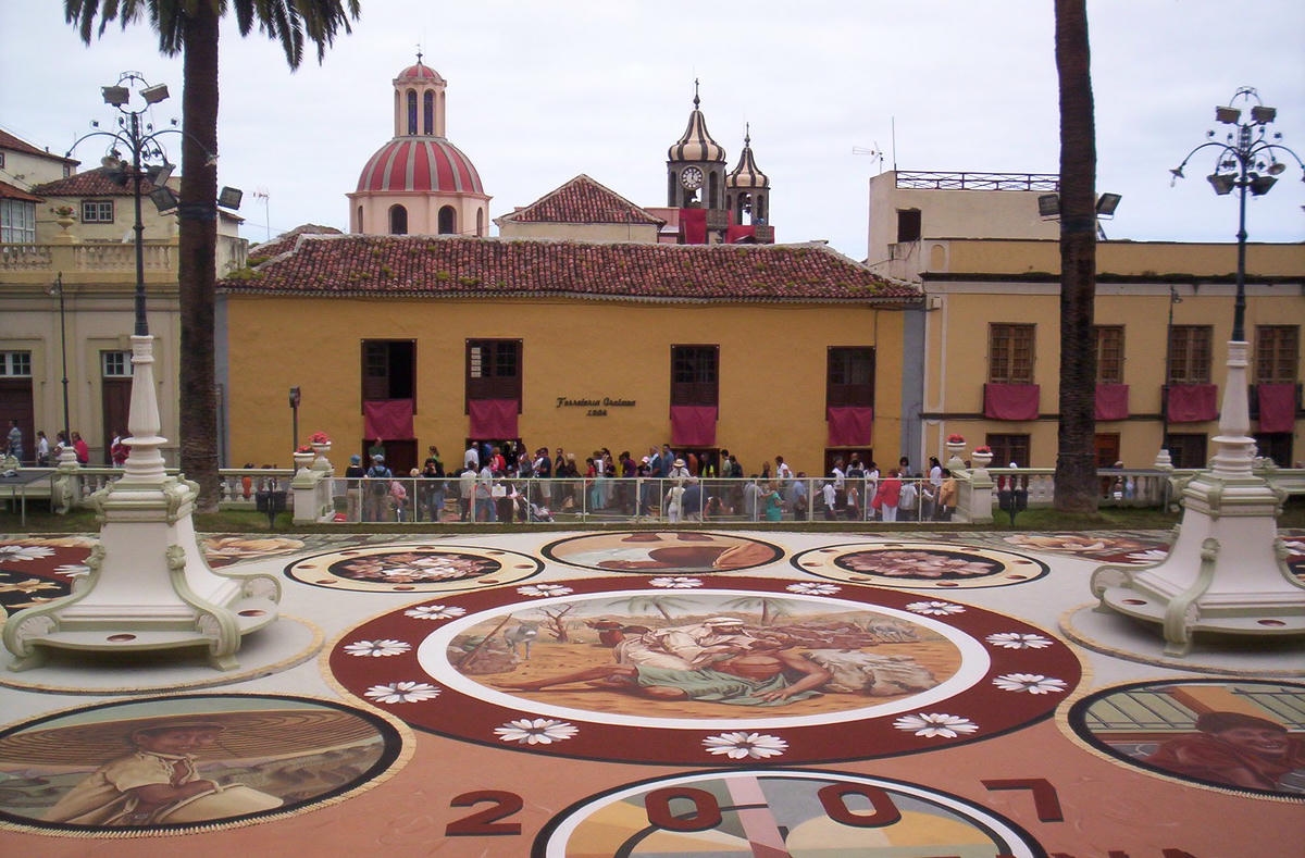 Igal aastal võtavad tenerifenod ehk kohalikud ja tuhanded turistid vaguralt kilomeetrisesse järjekorda, et La Orotava raehoone ühest tiivast üles teisele korrusele tõusta ja siis on neil tervelt paar minutit aega, et kukesammhaaval mööda avatud akendega koridori kulgedes vaadata alla selleaastaele ilmaimele: keskväljakule rajatud vulkaanilisest liivast maalile. Mis aasta-aastalt üha rohkem hüperrealismiks kipub. 1847 valmistas proua Leonor esimese vaibakese oma maja ette, mõõtudega 2,5 x 3,5 meetrit, sellest on ühe abilise tehtud joonistus tänaseni säilinud. Järgnenud enam kui pooleteise sajandi jooksul on sellest saanud üle-hispaanialise kõlapinnaga traditsioon (TV ja reportaažid jne), samuti teised põhjakalda linnad (ka Icod de Los Vinos), aga kusagill mujal ei ole alfombraseid ehk lille- ja liivavaipu nii massiliselt – La Orotavas on sõna kõige otsesemas mõttes kogu linnasüda üks lille- ja liivavaip.