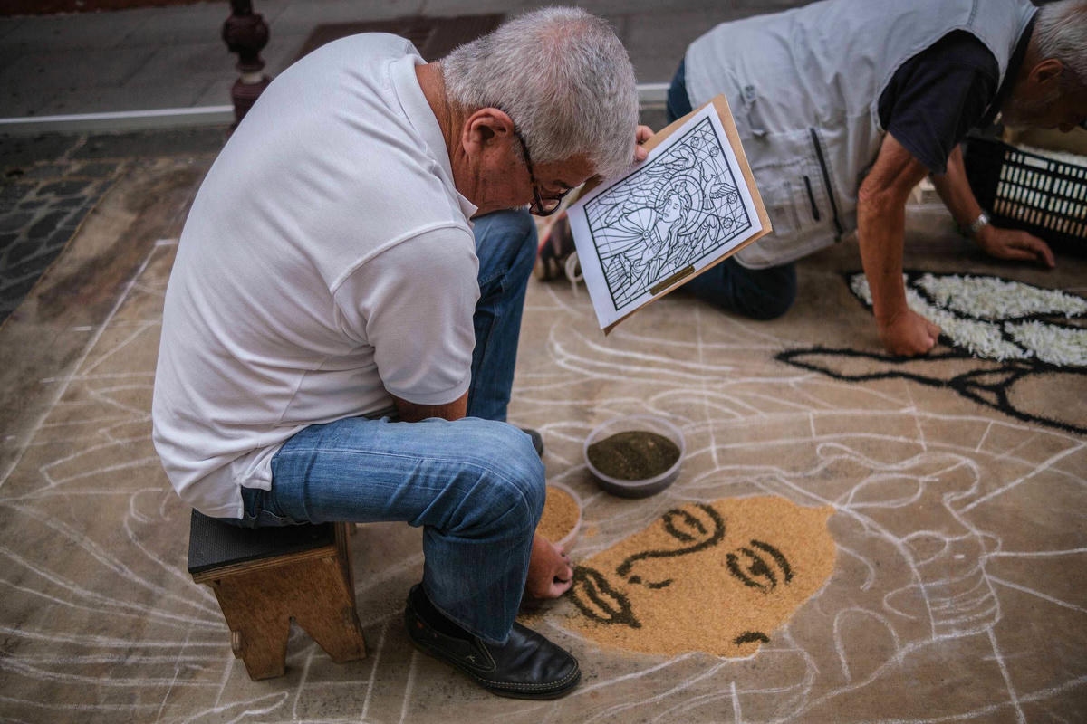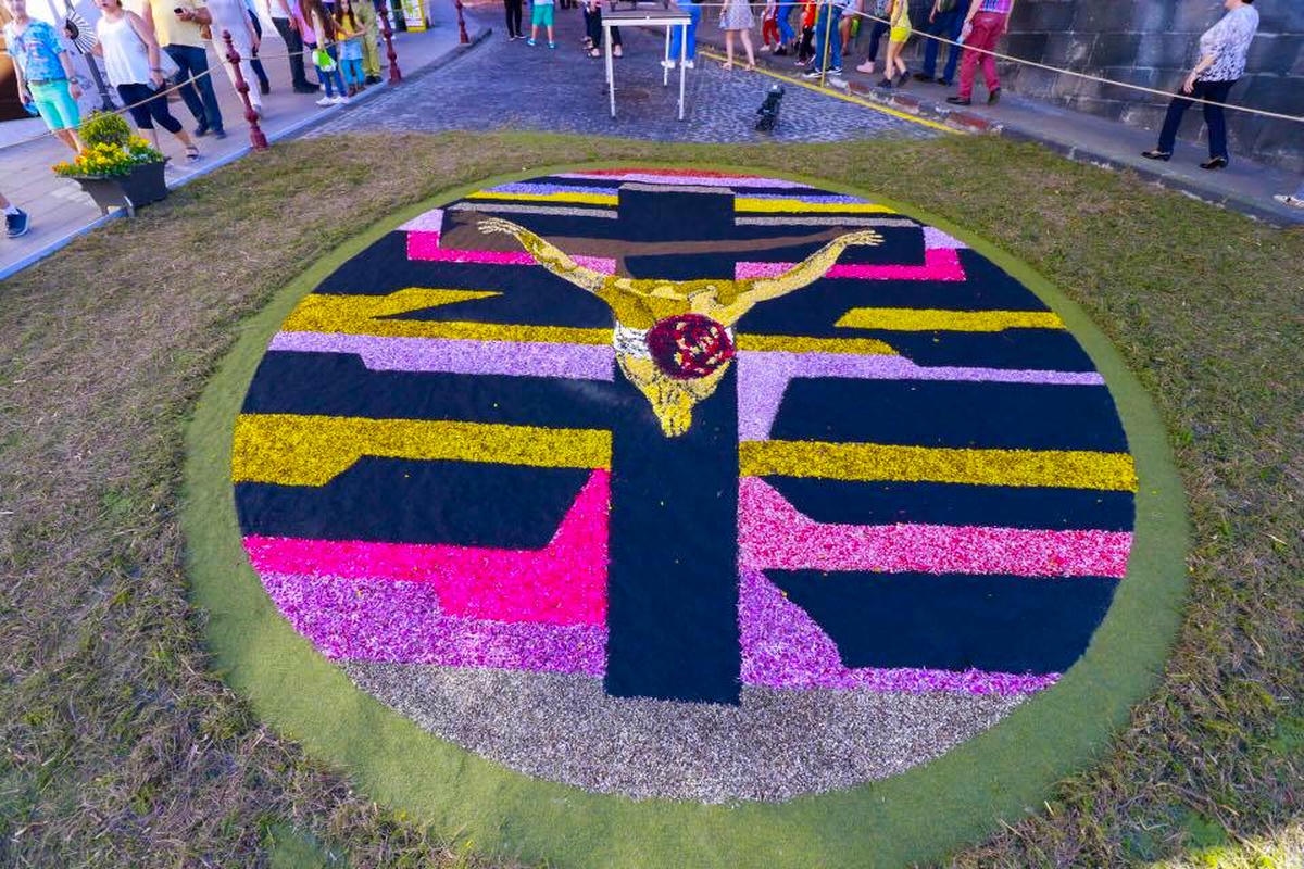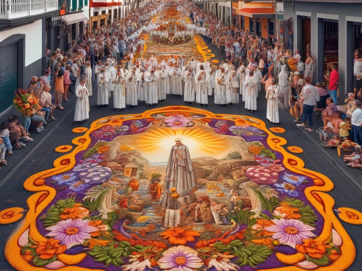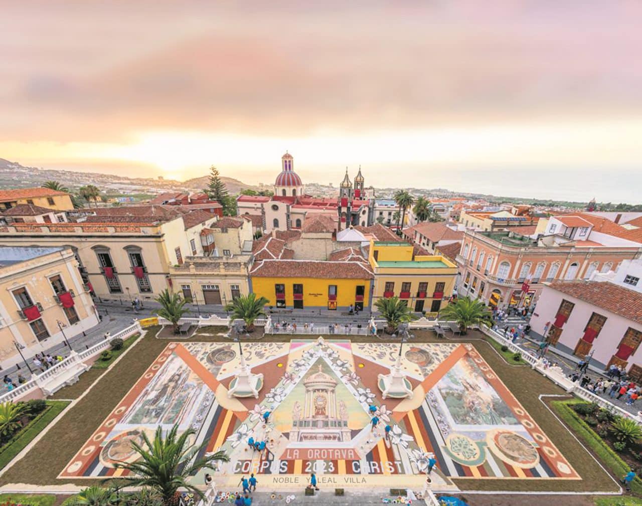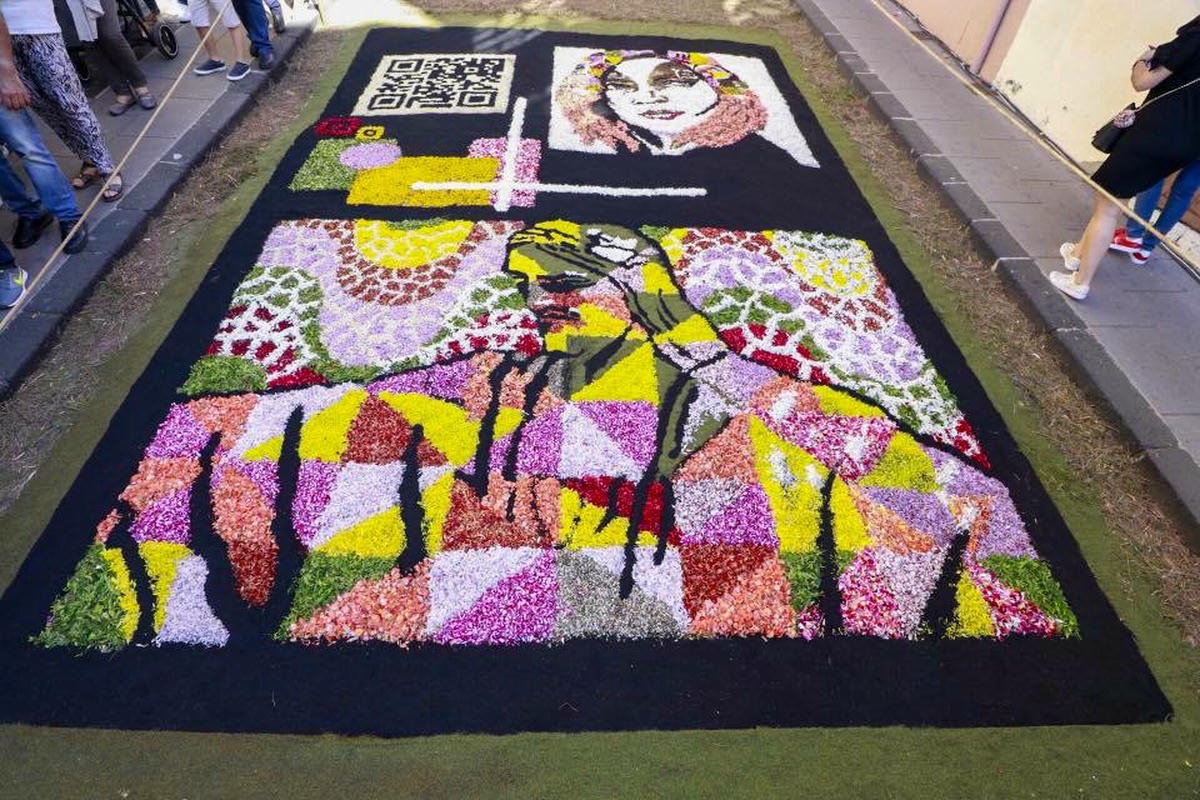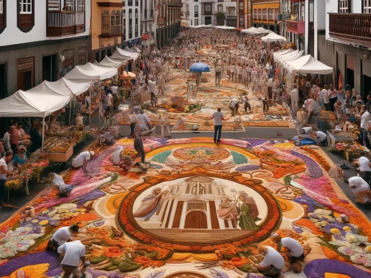 Igal aastal võtavad tenerifenod ehk kohalikud ja tuhanded turistid vaguralt kilomeetrisesse järjekorda, et La Orotava raehoone ühest tiivast üles teisele korrusele tõusta ja siis on neil tervelt paar minutit aega, et kukesammhaaval mööda avatud akendega koridori kulgedes vaadata alla selleaastaele ilmaimele: keskväljakule rajatud vulkaanilisest liivast maalile. Mis aasta-aastalt üha rohkem hüperrealismiks kipub. 1847 valmistas proua Leonor esimese vaibakese oma maja ette, mõõtudega 2,5 x 3,5 meetrit, sellest on ühe abilise tehtud joonistus tänaseni säilinud. Järgnenud enam kui pooleteise sajandi jooksul on sellest saanud üle-hispaanialise kõlapinnaga traditsioon (TV ja reportaažid jne), samuti teised põhjakalda linnad (ka Icod de Los Vinos), aga kusagill mujal ei ole alfombraseid ehk lille- ja liivavaipu nii massiliselt – La Orotavas on sõna kõige otsesemas mõttes kogu linnasüda üks lille- ja liivavaip.