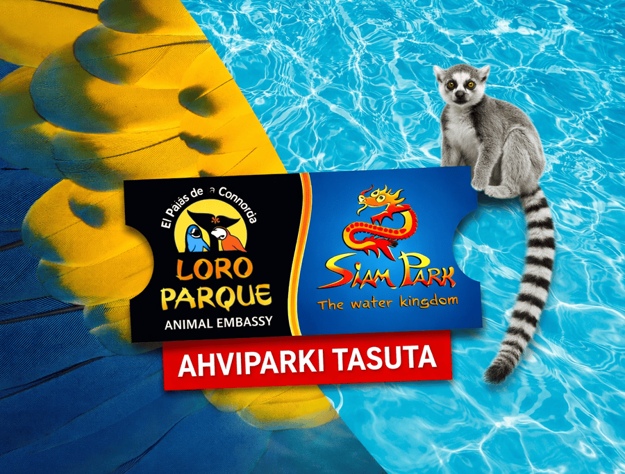 | Twin ticket (Loro + Siam, Monkey Park tasuta) + transfeer Loro parki | 12+ a. 98 €, 6–11 a. 73 €, 2 a. 18 € |